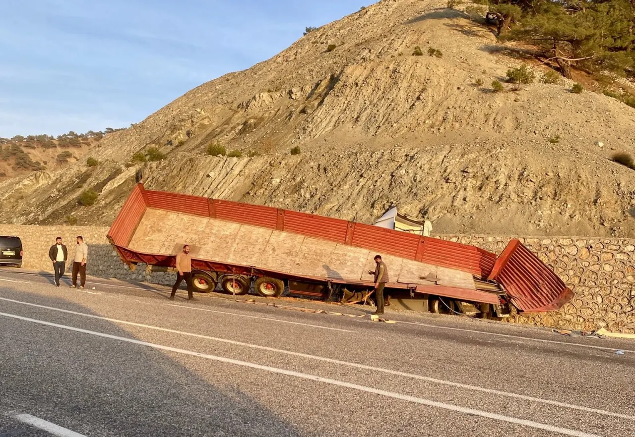 Doğanşehir Erkenek mevkiinde meydana gelen trafik kazasında, İ.A yönetimindeki 38 JA 948 plakalı tır, sürücünün direksiyon hakimiyetini kaybetmesi sonucu yoldan çıkarak devrildi.