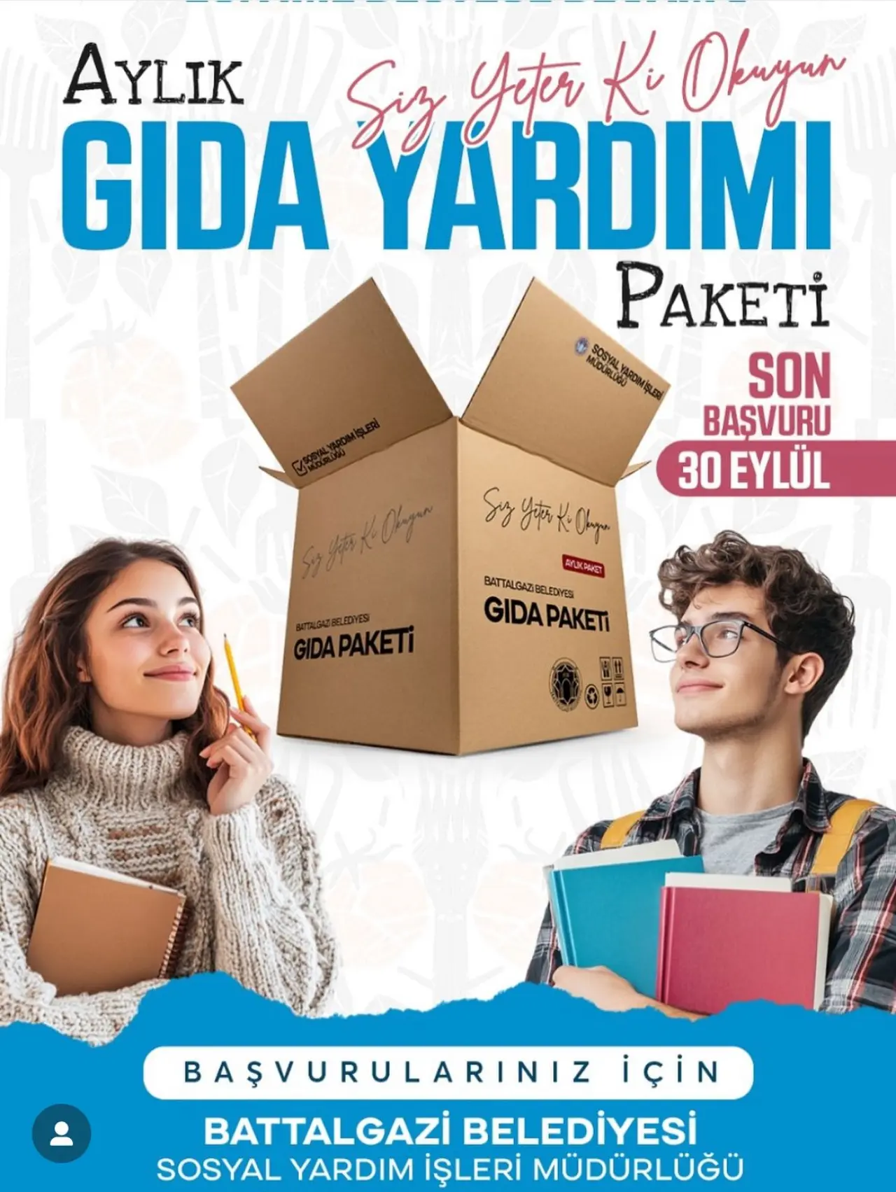 Üniversite gençlerini de unutmayan Battalgazi Belediyesi, "Siz Yeter Ki Okuyun" projesi kapsamında her ay düzenli olarak gıda paketleri dağıtmaktadır. Bu sayede öğrencilere destek olunurken aynı zamanda aile bütçelerine katkı sağlanmaktadır.