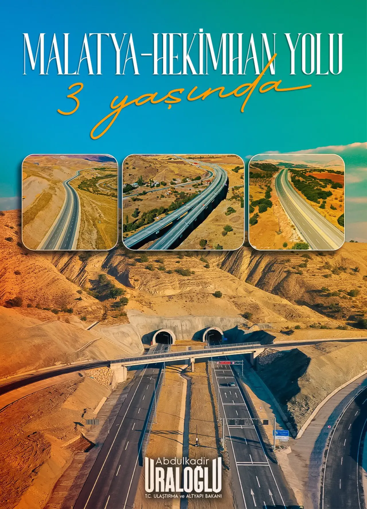 Ulaştırma ve Altyapı Bakanı Abdulkadir Uraloğlu, Malatya-Hekimhan Yolu’nun 3 yıldır hizmette olduğunu sosyal medyadan duyurdu.
