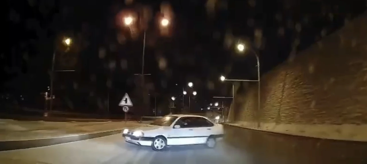 Görüntülerde, buzlanmanın etkisiyle savrulan otomobilin diğer araçlar için ciddi bir tehlike oluşturduğu ve neredeyse kaza yaşanacağı anları gözler önüne serdi.
