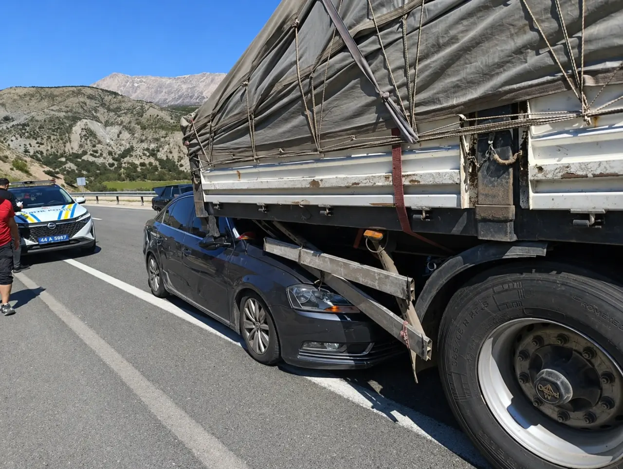 Çarpmanın şiddetiyle otomobilin ön kısmı dorsenin altına girerek sıkıştı. Çevredekilerin ihbarı üzerine olay yerine hızla sağlık ve polis ekipleri sevk edildi.