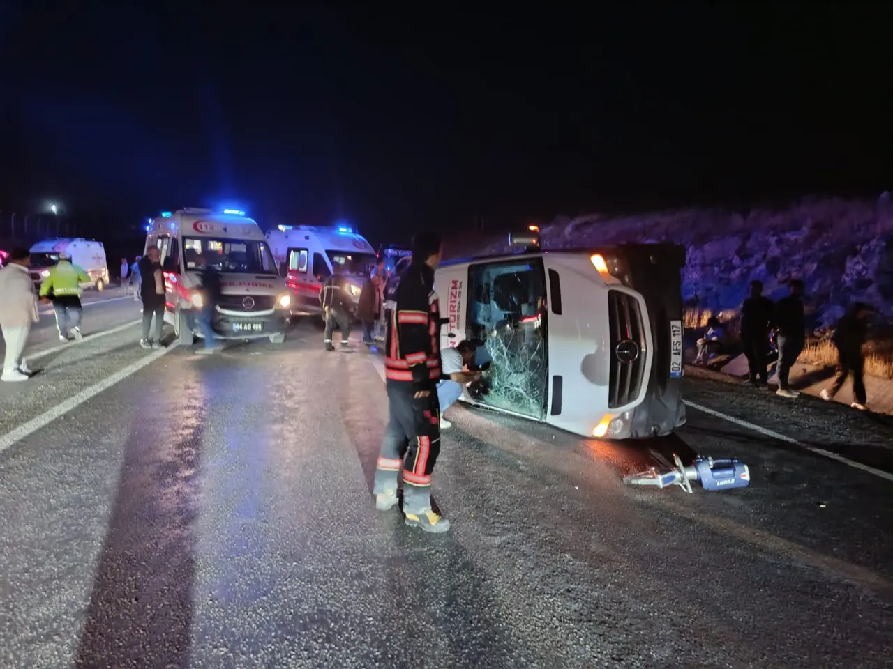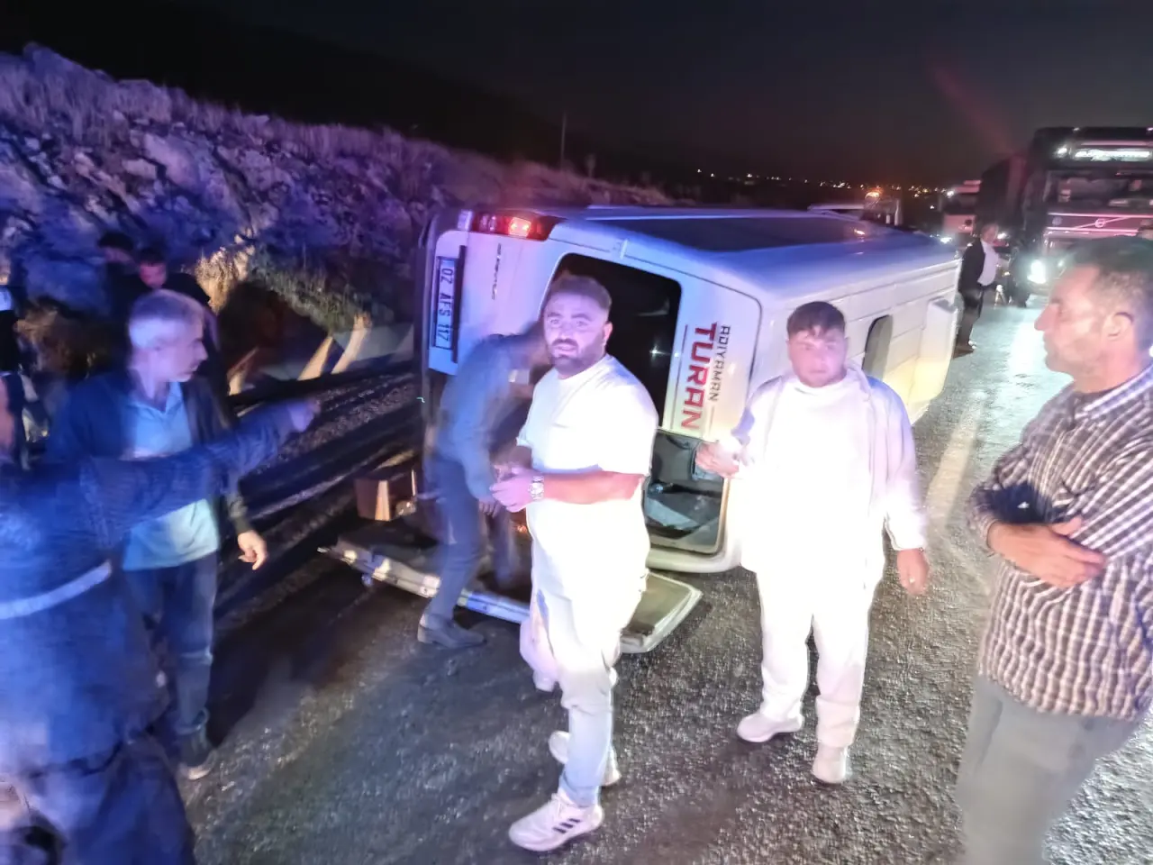 28 AZ 683 plakalı hafif ticari araç ile aynı yönde ilerleyen 02 AFS 117 plakalı yolcu minibüsü çarpıştı. Kazada çarpışmanın etkisiyle minibüs devrilerek yan yattı.