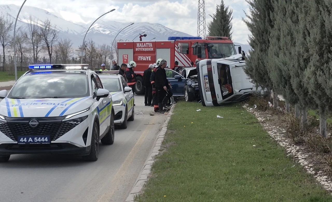 Edinilen bilgilere göre, A.Ç. yönetimindeki 44 NV 699 plakalı hafif ticari araç ile S.G. idaresindeki 44 ES 0044 plakalı otomobil henüz belirlenemeyen bir nedenle çarpıştı. Çarpışmanın etkisiyle 44 NV 699 plakalı ticari araç devrilirken, kazada araçlarda ciddi maddi hasar oluştu. Kazada, ticari araç sürücüsü A.Ç. ile aynı araçta yolcu konumunda bulunan M.Y.Ç. ve diğer araçta yolcu olarak bulunan B.G. yaralandı.