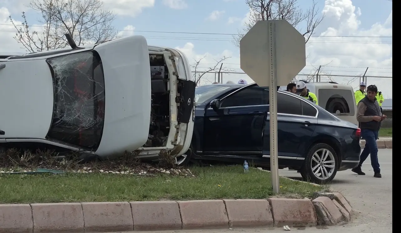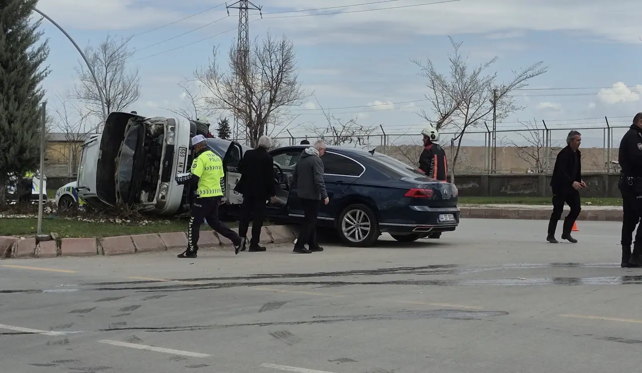 Hafif Ticari Araç Çarpışmanın Etkisiyle Devrildi