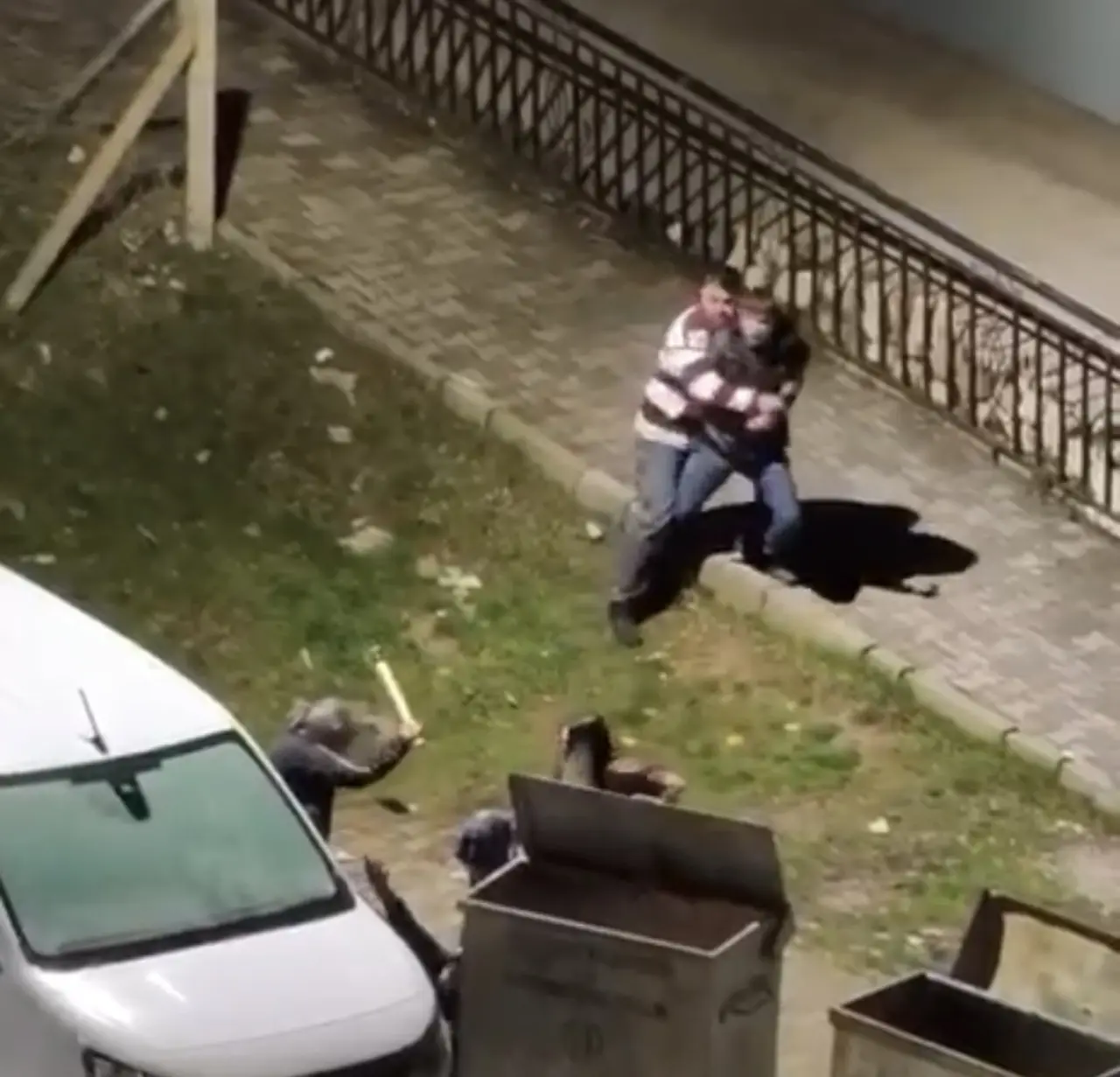 Tartışmaya müdahil olan komşular H.Ş., E.Y., H.M.Ç. ve M.B.Ş., şüpheli E.T.’yi darp etti. Bu anlar bir vatandaşın cep telefonu kamerasına anbean yansıdı. Dakikalarca ellerindeki sopalarla eski eşini rahatsız eden kişiyi darp edenler, polisin olay yerine gelmesi ile birlikte gözaltına alındı. Mahallede yaşanan arbede, güvenlik güçlerinin müdahalesiyle son buldu.