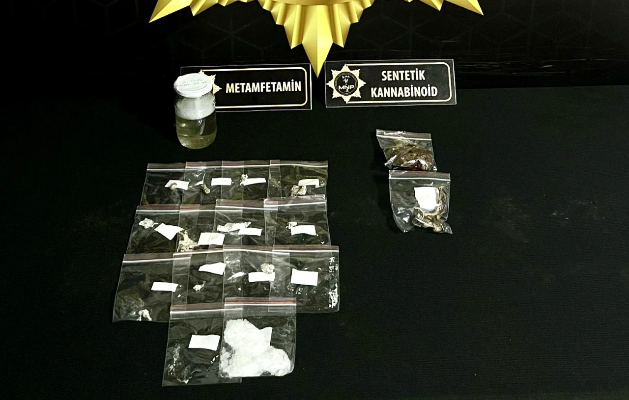 Gerçekleştirilen aramalarda; 212,27 gram sıvı metamfetamin, 21,53 gram metamfetamin ve 59,61 gram sentetik kannabinoid maddesi ele geçirildi.