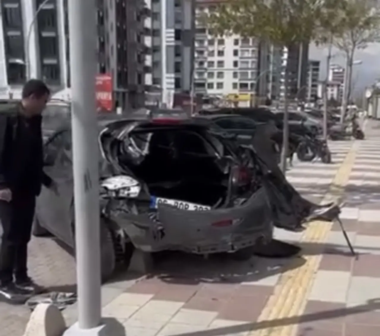 Kazanın yaşandığı an, çevrede bulunan bir iş yerinin güvenlik kamerasına yansıdı. Görüntülerde, otomobilin hızla gelip park halindeki araçlara çarpması ve ardından çevredekilerin yardıma koşması yer alıyor.
