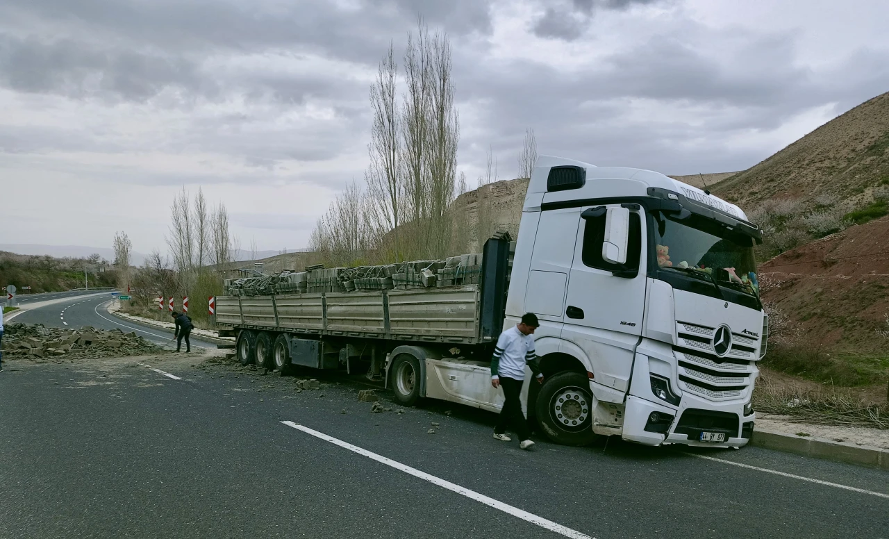 Edinilen bilgilere göre, saat 18.30 sıralarında sürücü Ömer Bozkuş’un direksiyon başında uyuyakalması sonucu kontrolden çıkan tır, karşı şeride geçti. Kazada şans eseri yaralanan olmazken, araçta yüklü bulunan bimsler yola döküldü.