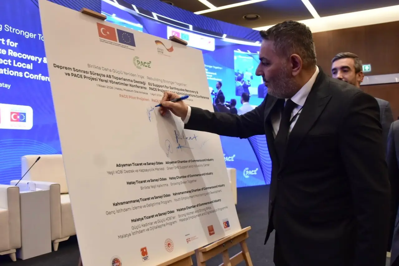 Malatya Ticaret ve Sanayi Odası (MTSO) Yönetim Kurulu Başkanı Oğuzhan Ata Sadıkoğlu, Hatay’da düzenlenen “Birlikte Daha Güçlü Yeniden İnşa: Deprem Sonrası Süreçte AB Toparlanma Desteği ve PACE Projesi Konferansı”na katılım sağladı. “Umutları Yeniden İnşa Etmek İçin Ekonomiyi Canlandırmak” adlı panelde konuşan Başkan Sadıkoğlu, 6 Şubat sonrası yürütülen çalışmalar ile süreç içerisinde ortaya çıkan yeni sorun ve ihtiyaçlara ilişkin değerlendirmelerde bulundu.