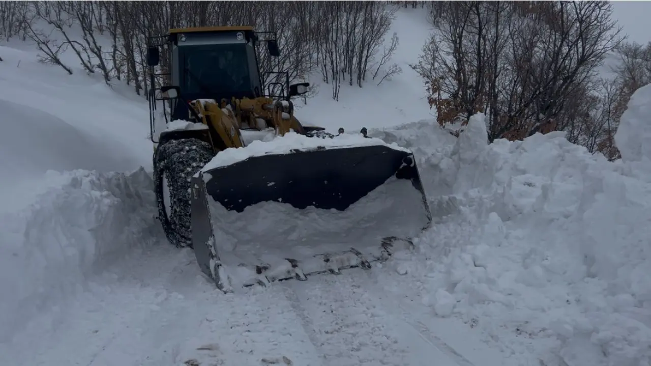 Yer yer 1 metreyi bulan kar kalınlığına rağmen iş makineleriyle zorlu bir mücadele veren belediye ekipleri, saatler süren yoğun çalışmanın ardından yolu ulaşıma açtı. Açılan yol sayesinde hastanın düzenli kullanması gereken ilaçlar kısa sürede mezraya ulaştırıldı.