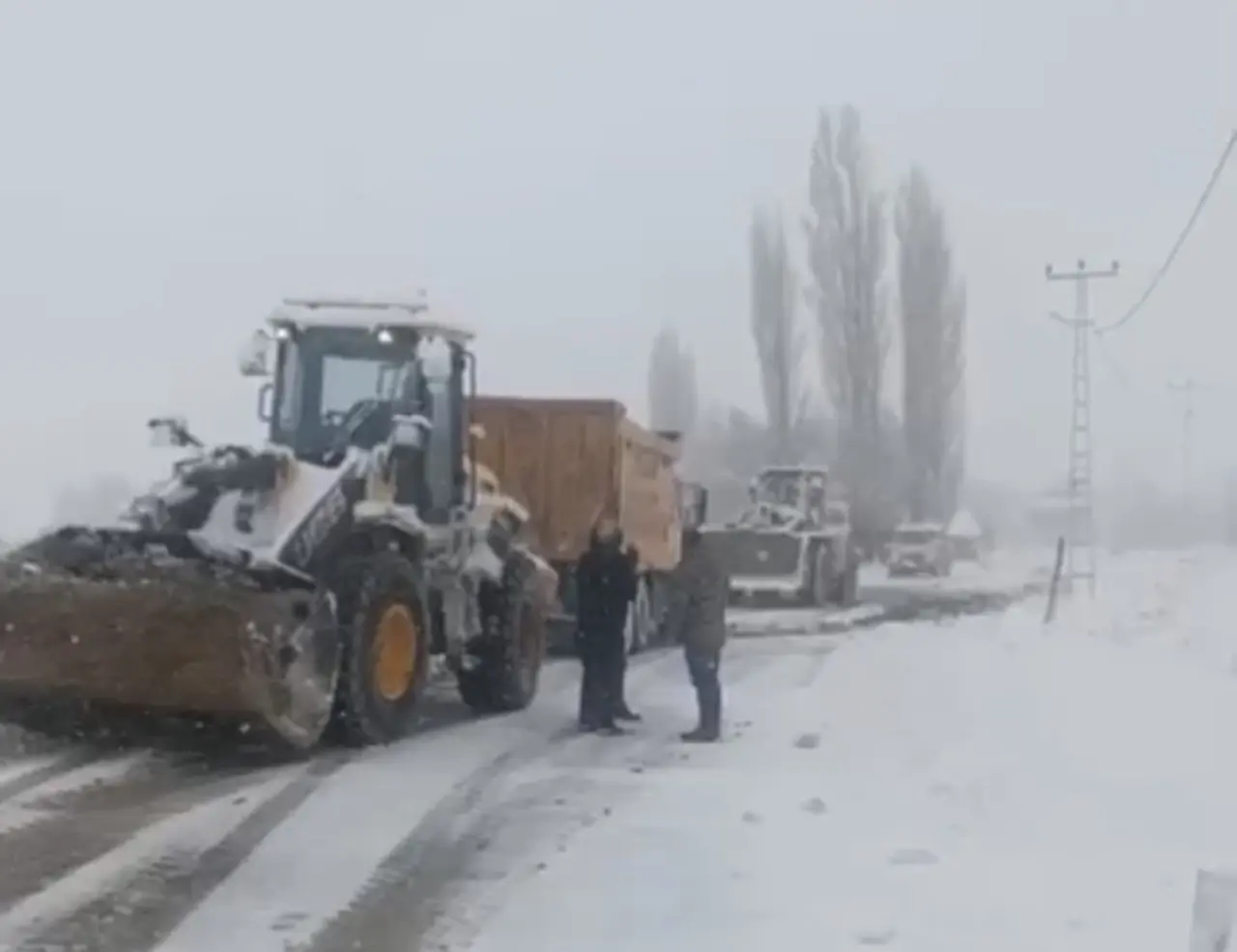 Bölgede çalışma yapan Karayolları ekiplerine ait araçlar, olumsuz hava koşulları nedeniyle yolda mahsur kaldı. İhbar üzerine harekete geçen belediye ekipleri, zorlu hava ve yol şartlarına rağmen hızla bölgeye ulaştı.