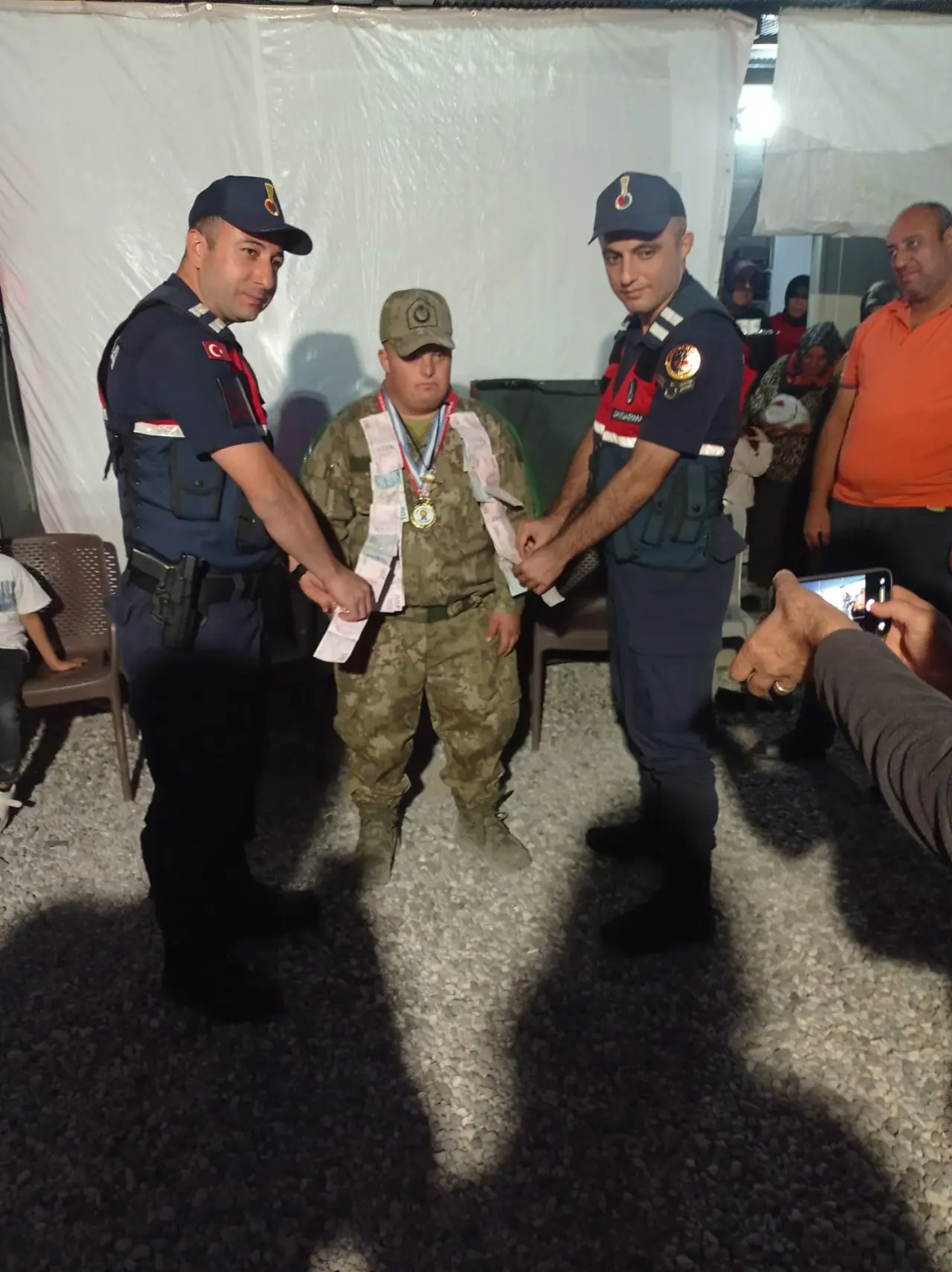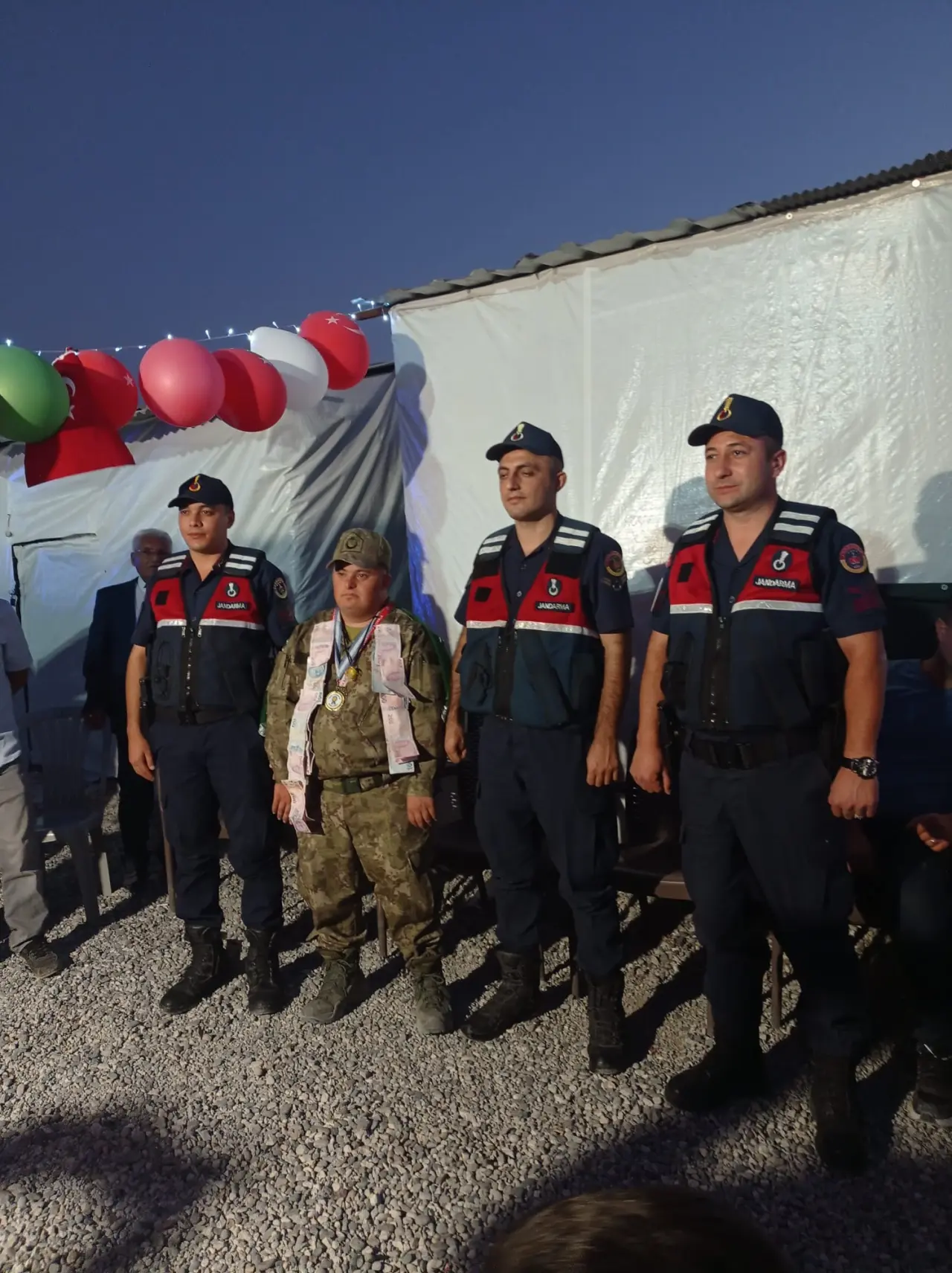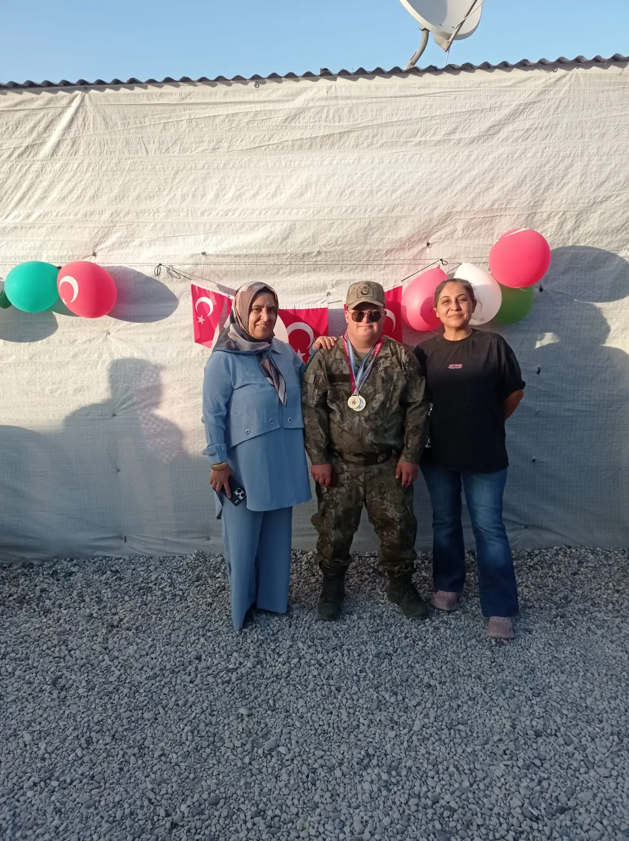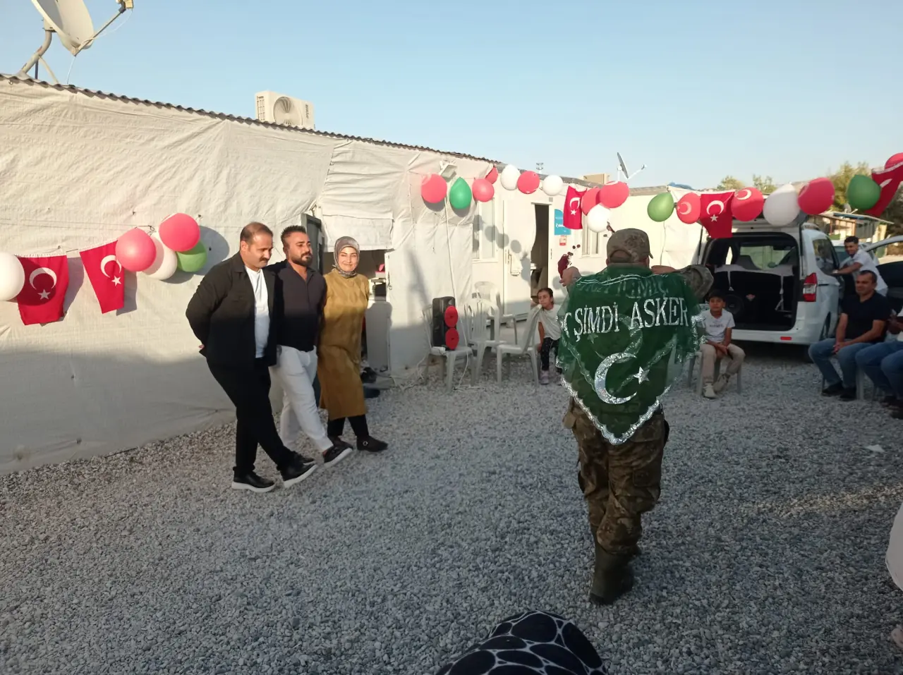 Ferhat Fırat, asker kıyafetiyle büyük bir gurur ve mutluluk içinde poz verirken, çevresindekilerin alkışlarıyla adeta bir kahraman gibi uğurlandı. Vatandaşlar, bu özel anla hem Ferhat’a moral verdi hem de konteyner kentte umut dolu bir atmosfer oluşmasını sağladı. E-Jandarma görevlilerinin de yalnız bırakmadığı programda Ferhat’ın içten gülümsemesi herkesin yüreğine dokundu.