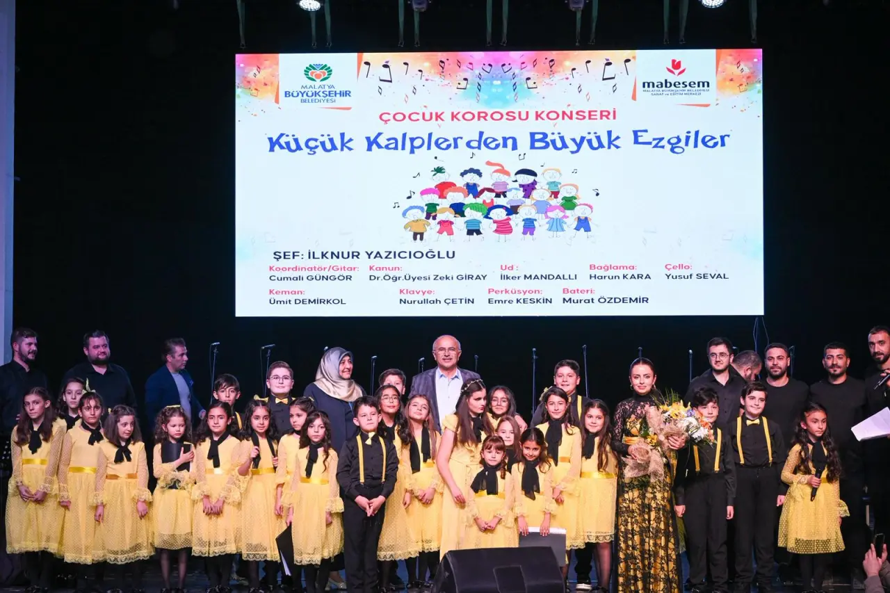 Malatya Büyükşehir Belediyesi Sanat Merkezi çocuk korosu, “Küçük Kalplerden Büyük Ezgiler” konseriyle seyircileri büyüledi. Başkan Sami Er, çocuklarla sahnede halay çekip türküye eşlik etti.