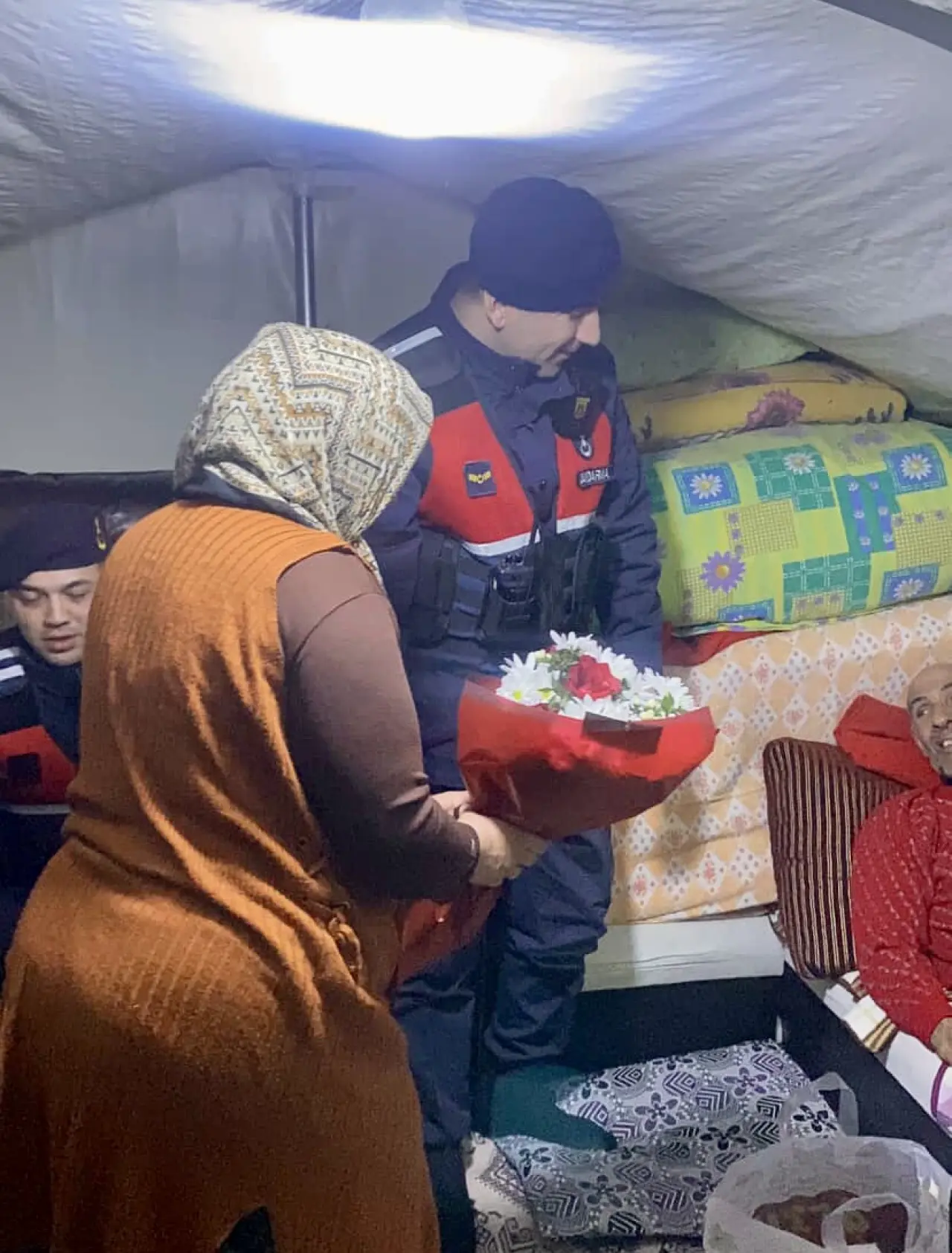 Talep üzerine harekete geçen jandarma ekipleri, temin ettikleri çiçek ve pastayı Aysel Taç’a teslim ederek aileye unutulmaz bir Sevgililer Günü sürprizi yaşattı.