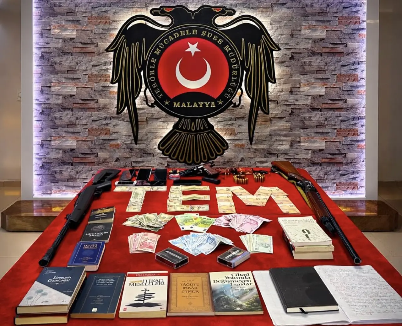 Şüphelilere ait adreslerde yapılan detaylı aramalarda; 1 adet kuru sıkı tabanca, 2 adet tüfek, 47 adet fişek, çok sayıda yasaklı yayın, döviz cinsinden para ile örgütsel dokümanlar ele geçirildi. Gözaltına alınan 9 şüpheli hakkında Malatya Cumhuriyet Başsavcılığı’nın talimatları doğrultusunda işlemlerin sürdüğü öğrenildi.