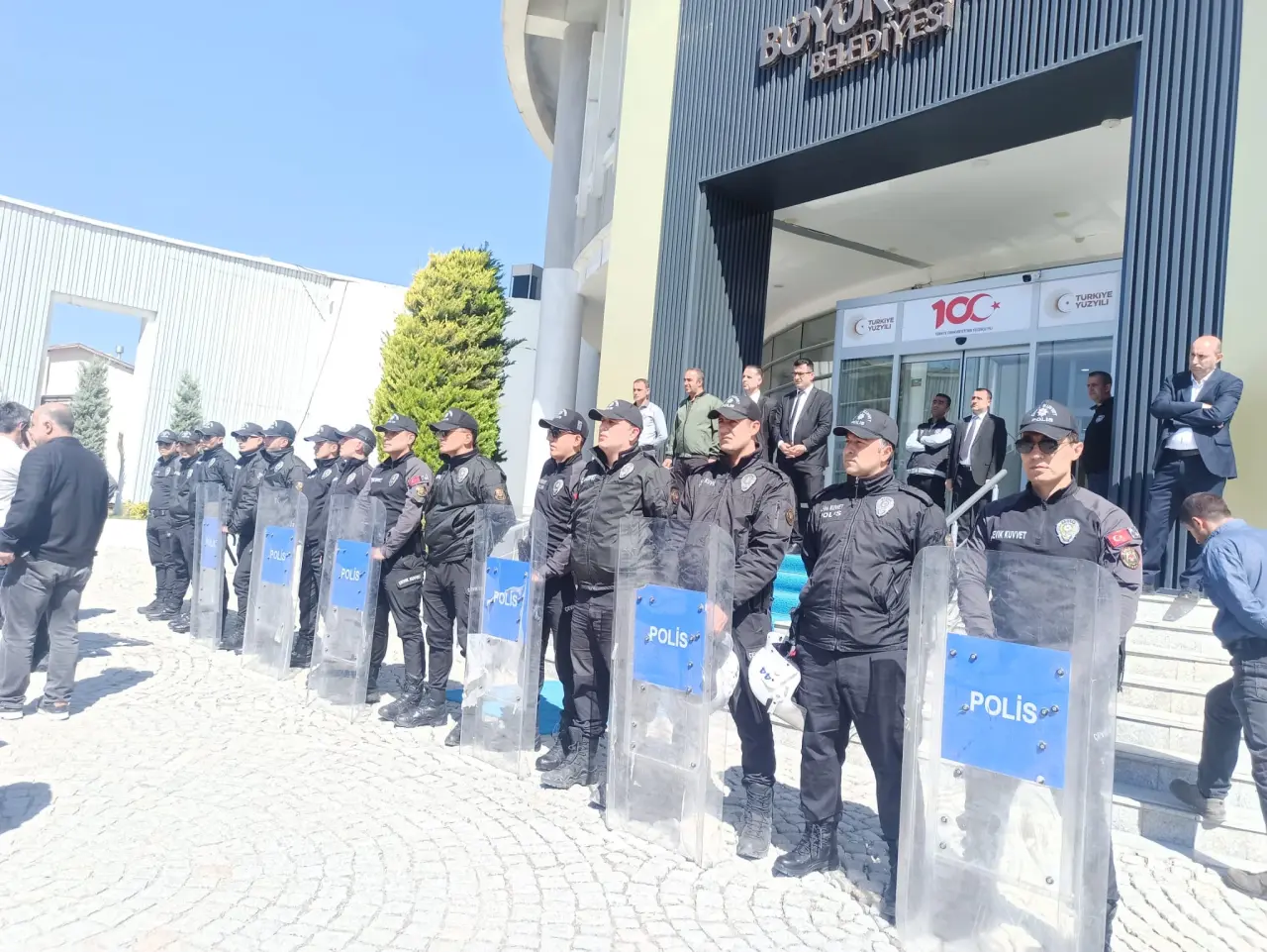 Çevik kuvvet ekiplerinin oluşturduğu barikat nedeniyle belediye binasına giriş yapamayan esnaf, burada oturma eylemi gerçekleştirdi. Esnafın temel talebi, iş yerlerini boşaltmaları yönünde yapılan tebligatlara karşılık, faaliyetlerini sürdürebilecekleri kalıcı bir çözüm sunulması oldu.