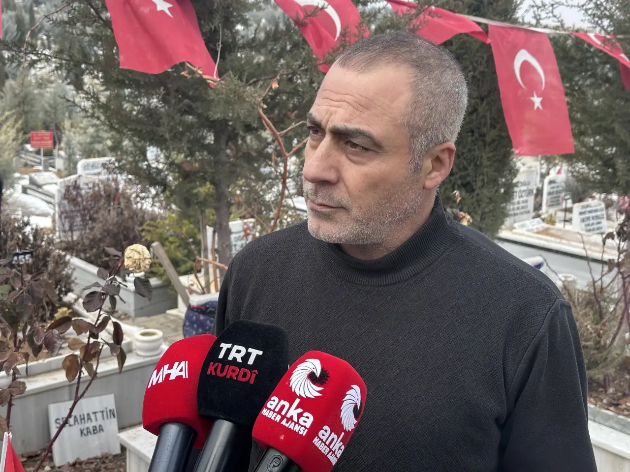 Kahramanmaraş merkezli 6 Şubat depremlerinde Malatya’da Yıkılan Kasapoğlu Apartmanı’nda eşi ve dört çocuğunu kaybeden Turgut Karaaslan, fırsat buldukça geldiği mezarlıkta çocuklarının sevdiği çikolataları mezar başına bırakıyor, mezar taşlarını öperek onlarla konuşuyor.