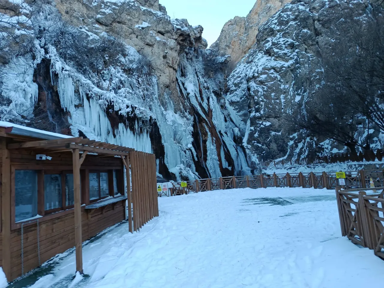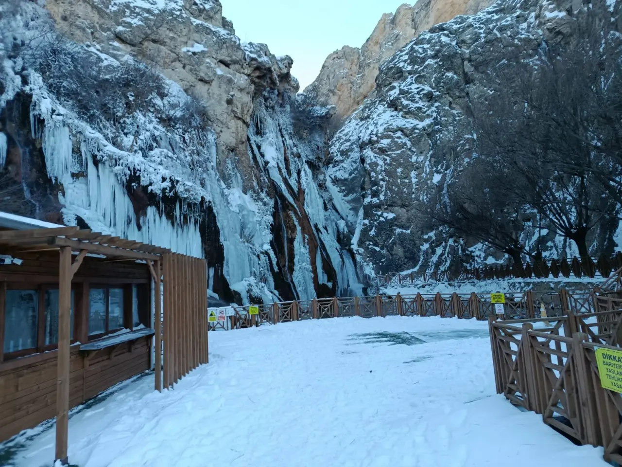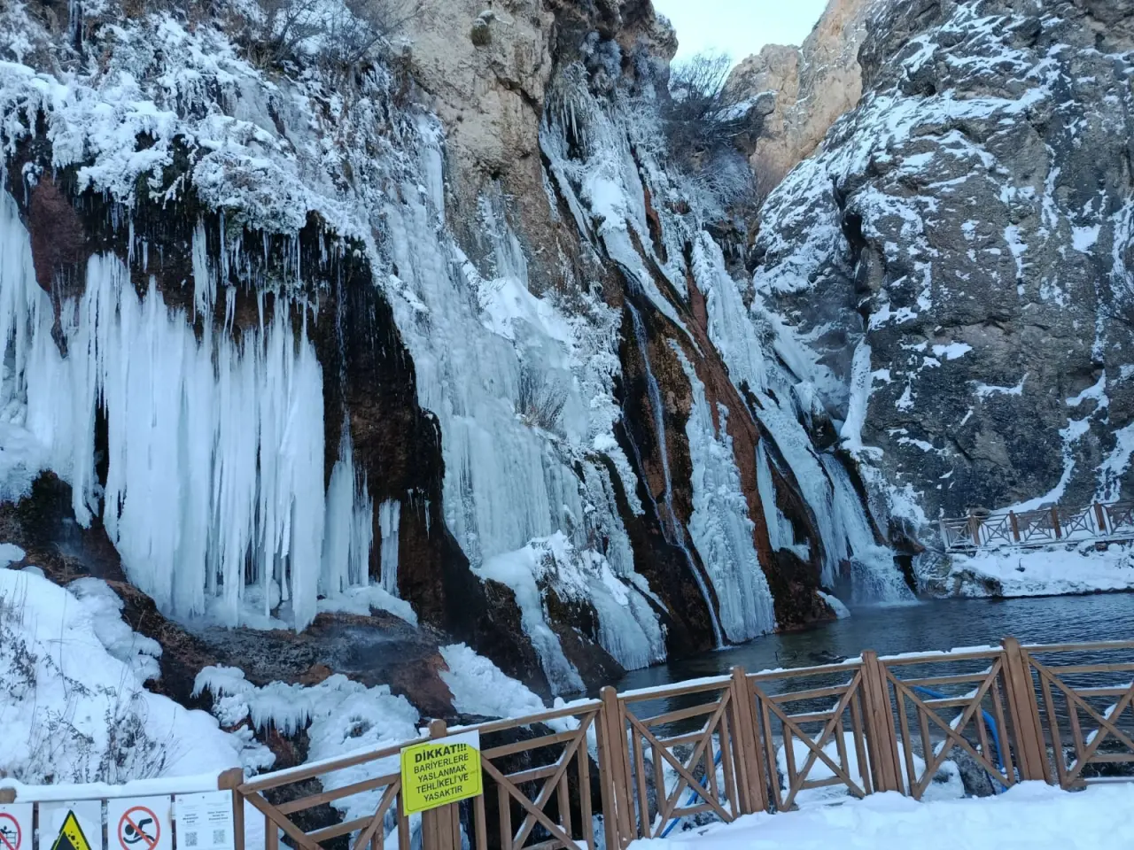 Türkiye’nin sayılı doğal güzelliklerinden biri olan Günpınar Şelalesi, aşırı soğuklarla birlikte beyaz bir gelinlik giydi. Malatya genelinde etkili olan kar yağışı ve dondurucu soğuklar, Darende’de termometreleri eksi 20 dereceye kadar düşürdü. Bu dondurucu hava, şelalenin gürül gürül akan sularını durdurarak devasa buz sarkıtlarına dönüştürdü.