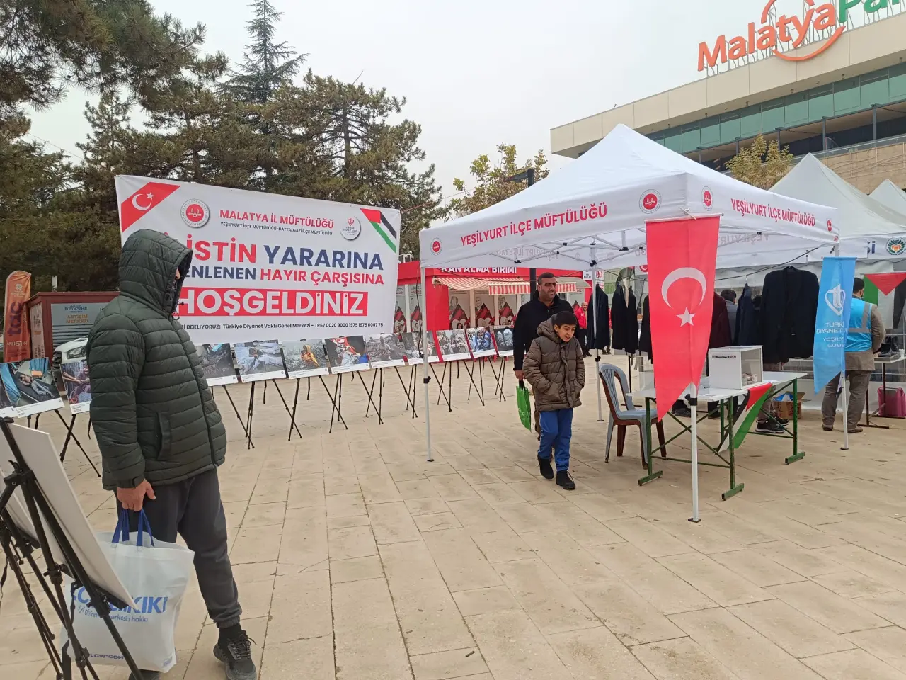 Malatya İl Müftülüğü öncülüğünde, Battalgazi ve Yeşilyurt İlçe Müftülüklerinin koordinasyonuyla Gazze’deki ihtiyaç sahipleri yararına iki gün sürecek hayır çarşısı vatandaşların katılımına açıldı. Kent merkezinde, AVM önünde kurulan stantlarda çeşitli ürünler satışa sunulurken, edilen gelirin tamamının Türkiye Diyanet Vakfı aracılığıyla ihtiyaç sahiplerine ulaştırılacağı bildirildi.