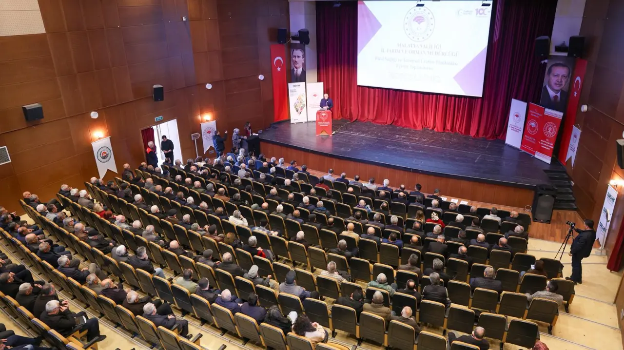 Malatya’da yeni üretim sezonu öncesi kayısı üreticileri ve çiftçilere yönelik; üretim planlaması, yeni destekleme modelleri ve teknik mücadele yöntemlerini kapsayan geniş çaplı bir eğitim toplantısı düzenlendi.