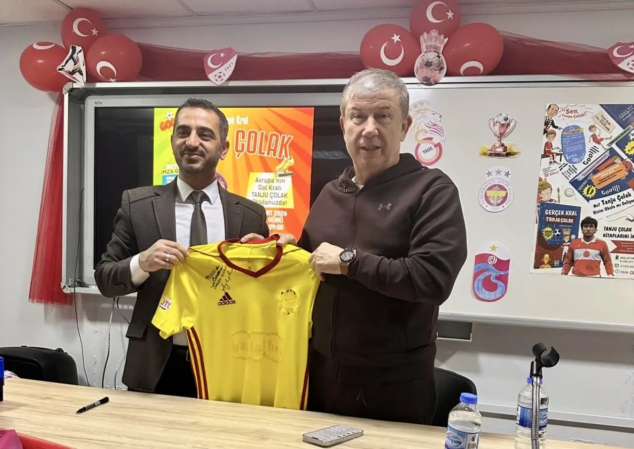 Okul müdürü Mesut Gönç’ün davetiyle gerçekleşen etkinlikte, öğrenciler ünlü golcüyle bir araya gelme fırsatı buldu. Söyleşi formatında düzenlenen programda Tanju Çolak, futbol kariyerine dair anılarını paylaşırken öğrencilere disiplin, azim ve hedef belirleme konularında önemli tavsiyelerde bulundu.