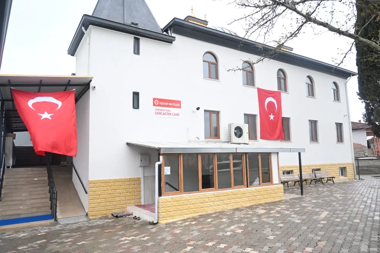 Malatya'da deprem sonrası yeniden inşa edilen ibadethaneler arasında yer alan Topsöğüt Mahallesi'nde bulunan Sancaktar Camii, Cuma namazı sonrası düzenlenen bir programla ibadete açıldı.