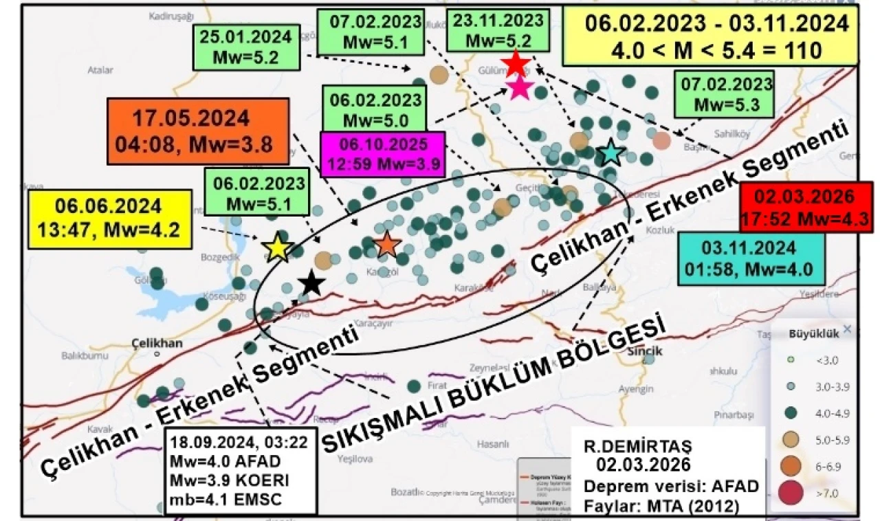 Emekli jeoloji mühendisi Prof. Dr. Osman Bektaş, son depremin 2023 depremlerinin gecikmiş artçısı olarak nitelendirilebileceğini belirterek, bu sarsıntının büyük bir depremin doğrudan habercisi olmadığını vurguladı. Bektaş, özellikle 9 kilometre derinlikte gerçekleşen sığ depremlerin, eski ve yorgun binalar açısından risk oluşturabileceğini ifade etti.