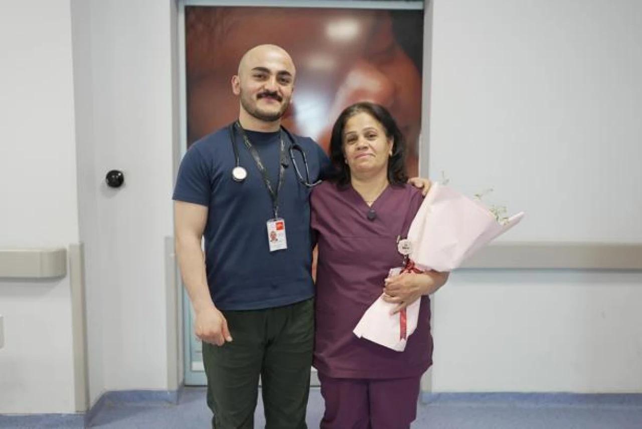 Aynı Hastanede Anne-Oğul Nöbeti: Doktor Şekerci’den Ebe Annesine Çiçekli Sürpriz