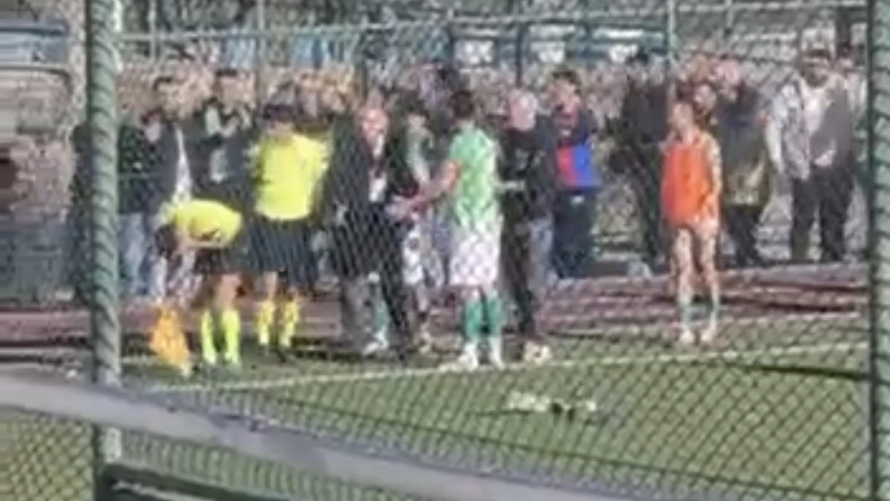 Tribünlerden sahaya yabancı maddeler atılmaya başlanırken, bir taraftarın fırlattığı scooter yardımcı hakem Hakan Başkurt’a isabet etti. O anlar bir cep telefonu kamerasına saniye saniye yansıdı. Kaşından yaralanan hakeme ilk müdahaleyi sağlık görevlileri yaparken, orta hakem yaşanan şiddet olayı nedeniyle karşılaşmayı tatil etti.