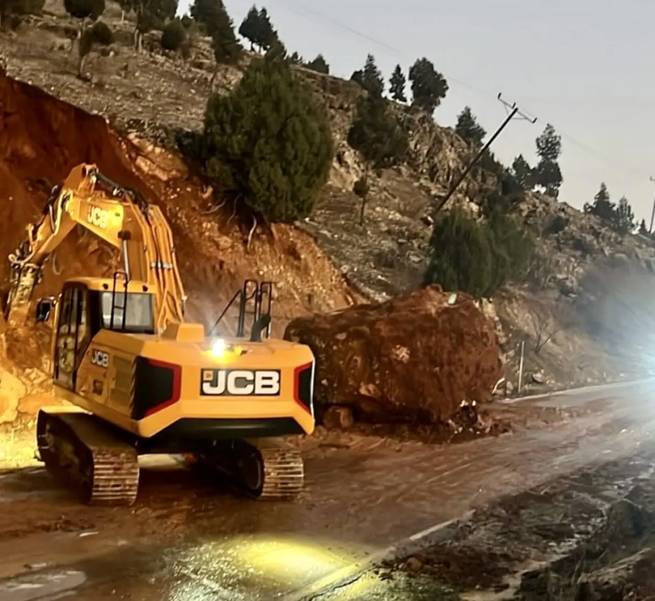 Toprak kaymasının ardından yolun yeniden ulaşıma açılması için ekiplerin bölgede çalışma başlattı. Yoldaki kaya parçalarının kaldırılmasının ardından yok yeniden ulaşıma açıldı.