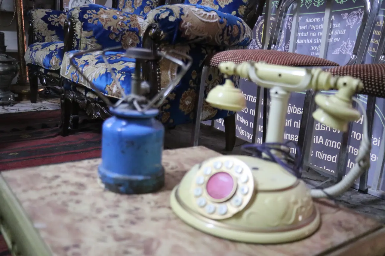 Cemevi Başkanı ve dedesi Aydın Gültekin, yıllardır ikinci el eşya ticaretiyle uğraşırken biriktirdiği yaklaşık 900 parçalık otantik eşyayı cemevinin bir bölümünde “şark köşesi” konseptiyle sergiliyor.