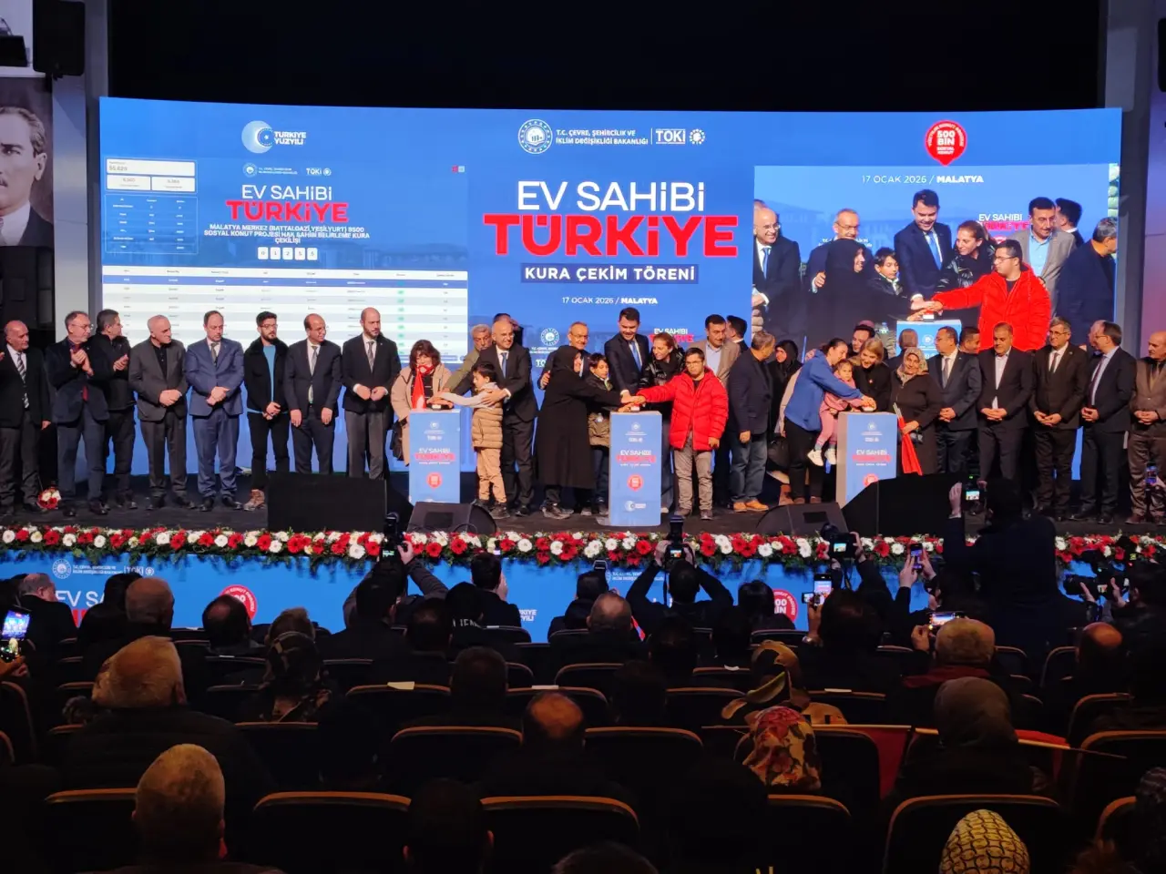 Malatya Kongre ve Kültür Merkezi’nde noter huzurunda düzenlenen tören, yoğun katılımla gerçekleşti. Bakan Murat Kurum, Vali Seddar Yavuz, AK Parti Milletvekili Bülent Tüfenkci, Büyükşehir Belediye Başkanı Sami Er ve TOKİ Başkanı Levent Sungur’un katıldığı programda binlerce vatandaş ev sahibi olma heyecanı yaşadı.