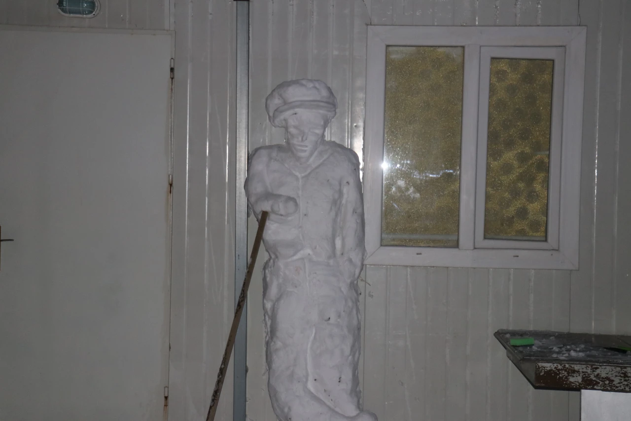 Malatya’da etkili olan kar yağışı, bir sanatçının ellerinde estetik bir esere dönüştü. Tiyatro sanatçısı ve ressam İbrahim Şahin Uyumaz, klasik "havuç burunlu" kardan adam klişesini yıkarak, kar kütlesinden gerçeğe birebir benzeyen bir insan heykeli yonttu.
